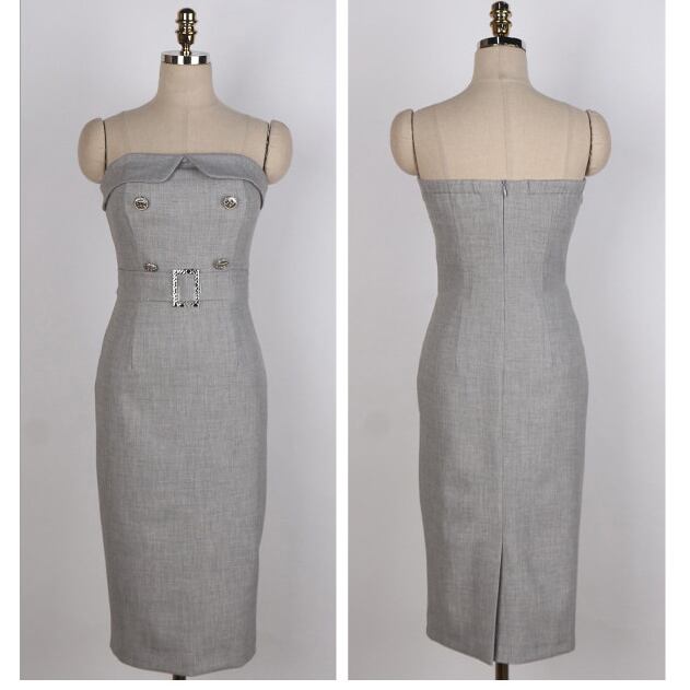 タイトなシルエットが女性らしいボディラインを引き立てる。
